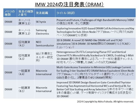 基調講演では次世代DRAMと次世代3D NANDの将来を展望