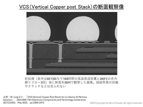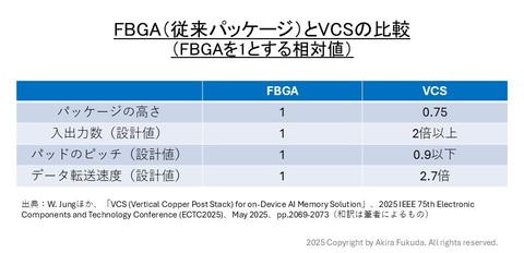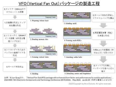 そこで冒頭に述べたように、PoP向けの次世代DRAMパッケージング技術をSK hynixは「VFO」、Samsungは「VCS」の名称で、それぞれ開発している。開発成果の一部は、半導体パッケージ技術の国際学会ECTCで、SK hynixが2024年に、Samsungが2025年に公表した。