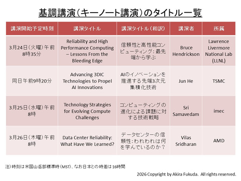 3日目(26日)はAMDのVilas Sridharan氏が「Data Center Reliability: What Have We Learned?(データセンターの信頼性: 我々は何を学んでいるのか?)」と題してデータセンターの信頼性を解説する。