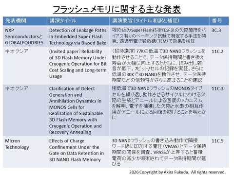 フラッシュメモリと磁気メモリの注目講演