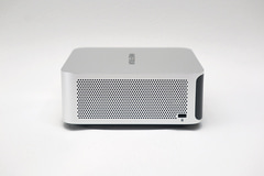 本機のユニークな点は3つ挙げられる。1つ目は背面のUSB4ポートが100WのUSB PDによる給電に対応している点。手持ちで100WのUSB PD対応の充電器があれば駆動できるので、たとえば本体付属のACアダプタは家に置いたままにして、外出先ではUSB PD充電器を使う、もしくはUSB Type-C対応モニターとケーブル1本で接続して動かすことができるわけだ。