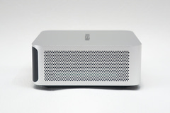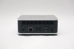 筐体は、先にRyzen搭載で先行している「AI X1」や、サブブランドAiberzyで展開している「XG1-370」を踏襲している。本体サイズは128×126×52mmとミニPCとしては一般的なものだが、金属で作られているため質感は高い。コンパクトな筐体と付属するVESAマウンタを生かして、モニターの後ろにつけて“一体型”として使うのもアリだろう。