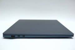 また、天板と底面に陽極酸化処理とサンドブラスト加工を施した質感の高いアルミニウム合金を採用しているのも特徴。本体色はインディゴブルーで、天板のロゴもさりげないプリントとなっている。低価格ノートではあるのだが、高級感のある仕上がりとなっているのも好印象だ。