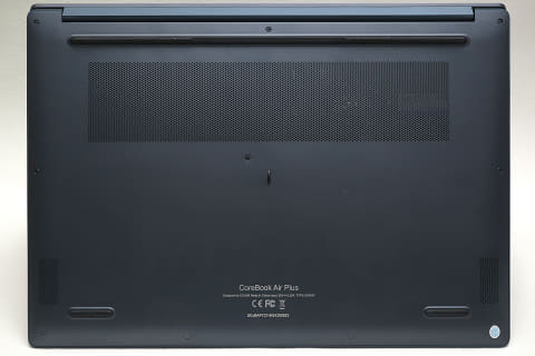 CoreBook Air Plusの最大の特徴は、なんといっても本体の厚みを9~16.3mm、重量を1.35kgに抑えた点である。一般的に16型ノートといえば1.5kg超えが当たり前であり、持ち運びを考慮している製品は(ないわけではないが)少ない。さらにその中でさらに10万円未満というと皆無だ。そのため、本製品は「安くて比較的軽い持ち運べる16型」として重宝されよう。