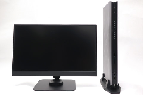 使い勝手に関しても先代を踏襲する。本体幅は実測で43.5mm、スタンド込みでも80mmという薄型の筐体は、たとえばデスクの脚と壁の間の隙間、モニターの背面や横といったデッドスペースに難なくフィット。さすがに設置面積は一般的なミニPCには敵わないが、これでGeForce RTX 5070 Laptop GPUの性能が手に入るのだから十分だ。