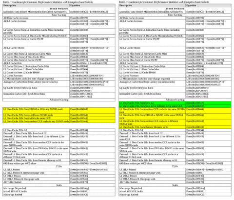 - スレッドあたり6つ、L3 Complexあたり6つ、データファブリック(Data Fabric)あたり16のPerformance Event Counterが搭載されている