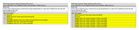 結構激しく違っているのがPMCx0AF(Dynamic Tokens Dispatch Stall Cycles 2)である(図7)。左のZen 5世代では、Dispatch Groupを纏めて扱っているのに対し、右のZen 6世代ではInteger Scheduler 1~6(整数スケジューラ1~6)とRetire(リタイア)について、各々トークンの有無をチェックする仕組みになっている。より細かく、どのスケジューラが遊んでいるかを監視できるわけだ。
