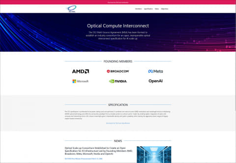 3月13日、AMD、Broadcom、Meta、Microsoft、NVIDIAとOpenAIの6社はOCI-MSAを結成したことを発表した。OCIはOptical Compute Interconnectの略であるが、そもそもリリースの見出しが「Optical Scale-up Consortium Established」というあたりで、これはスケールアップ向け光インターコネクトの仕様策定を狙うMSAであると高らかに宣言しているわけだ。