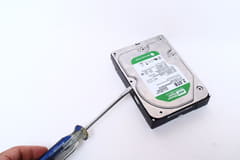 ネジを外すとフタが取れるはずだが、じつは最近のHDDはなかなか外れないようになっている。それはシリコン系のパッキンをしてあるので、ぴったり金属同士が接着してしまっている場合が多いからだ。マイナスドライバなどを差し込んで、こじ開ければいいだろう。