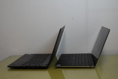 以下の写真のように、手元にあった13.3型ディスプレイや従来使っていた14型ディスプレイを搭載した製品とサイズを比較してみると、XPS 13のその小ささは圧倒的だ。