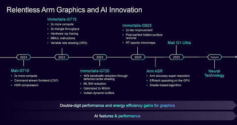 なお、Mali G1では、既にArmが発表しているGPUへのニューラルアクセラレータの導入は見送られている。今回、次世代以降にこの導入を予定しているが明らかとなっており、2026年版のLumexでの対応が見込まれる。