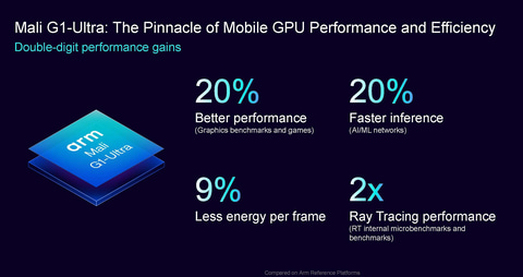Mali G1はG720、G925に引き続き第5世代GPUベース。レイトレ性能は2倍に