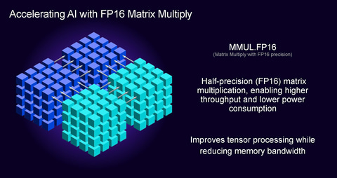 ただし、従来はFP32を利用したAI処理だけがサポートされてきたが、今回の世代ではFP16を利用したAIの処理が可能になった。アプリケーションがそれを活用することで、AI処理時にメモリ帯域を削減してスループットと電力効率を引き上げられる。