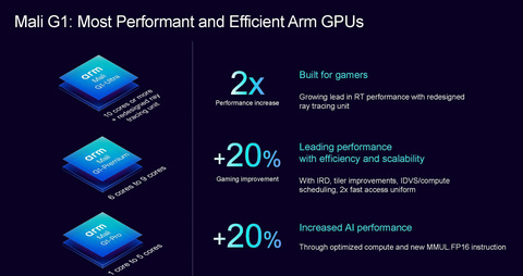 これはGPUも同様で、前世代まではImmortalisのブランド名がフラグシップ向けに使われてきたが、今回は以前のMaliに戻され、同時に「G」と「1」という世代を示す数字が付けられ「Mali G1」というブランド名に変更されている。Armによれば、ユーザーなどに調査した結果、ImmortalisよりもMaliの方が、認知度が高くシンプルであるためこのような変更を行なったということだった。