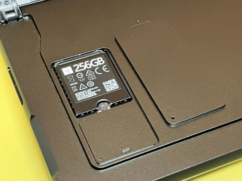 MicrosoftはSurface Pro 7+やSurface Pro 8世代などで、SSDをCRUにし、ユーザーが交換することを可能にした。それに合わせて、SSDの部分だけ裏蓋を簡単に開けられるようにして、交換を容易にした。