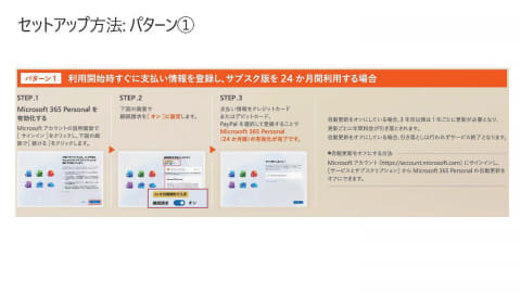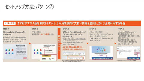 (2)3カ月間Microsoft 365 Personalを体験した後、残り21カ月のMicrosoft 365 Personalを継続する、あるいは永続版のOffice Home & Business 2024を選択する