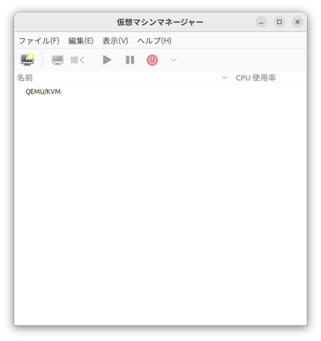 準備ができたら、仮想マシンにWindows 11をインストールしていこう。まずvirt-managerを起動する。すると自動的に「QEMU/KVM」に接続されるはずだ。もしここに何らかのエラーが表示されるのであれば、ここまでの手順に間違いがある可能性がある。特にUbuntuの再起動を忘れていないか確認してみて欲しい。