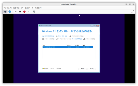 するとWindows 11のインストール先の選択画面に戻る。今度はVirtIOのストレージが表示されているはずだ。あとは通常通り、Windows 11のインストールを継続すればいい。
