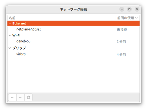 なおここでは、ホストPC自体はWiFiでネットワークに接続しており、空いている有線LANを仮想マシン用に使用することを想定している。もしハードウェア構成が異なる場合は、適宜読みかえて欲しい。