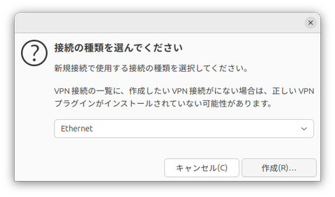 ブリッジにつなぐポートを設定する。ここではホストPCの有線LANを使うため、「Ethernet」を選択した。