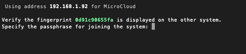 「Specify the passphrase for joining the system」と表示されたら、先ほど1号機の画面に表示されたパスフレーズを入力する。