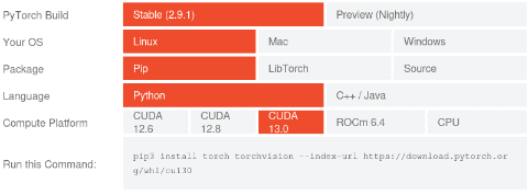 $ uv pip install torch torchvision --index-url https://download.pytorch.org/whl/cu130