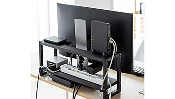 ディスプレイ裏収納ラックで机がキレイに! ゴチャゴチャする電源タップやACアダプタを死角で整理
