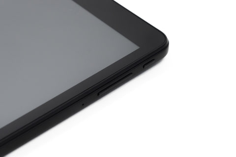 すでに述べた通り、本製品のディスプレイサイズは8型で、本体サイズは約210×9.7×125mmだ。片手で掴んで操作しやすい大きさで、重量も公称383gと軽めなので取り回しはいい。プラスチック製の筐体ということもあり、高級感などは望めないが、その分ラフに扱えると思えば特に気にはならないだろう。