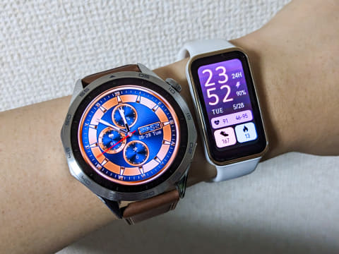 ちなみに筆者は2製品を比較した結果、家ではBand 9、外出時はWatch GT 4を使っている。これまで述べたように、スマートウォッチとしての便利さだけを考えるとBand 9だけで良いのだが、腕時計として装着したくなるデザインをしているのはWatch GT 4なので、このような使い分けをしている。