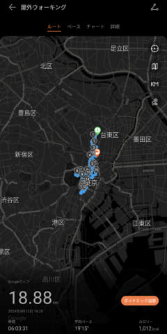 しかし、ある時に気づいたのだが、ダイナミック追跡はそもそもスマートウォッチがなくてもスマートフォンアプリの「HUAWEIヘルスケア」だけで利用できる機能であり、Band 9を使用していてもアプリ経由でワークアウトを開始すれば使えるのである。