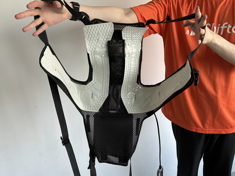付属の専用ベストはフリーサイズ。胸・腰・肩にアジャスターベルトが用意されており、多様な体形に対応できる。また水冷ベスト自体は柔軟性が高いので、「ペルチェ直冷方式」の冷却ユニットや、空調ベストの冷却ファンのように身体に固く当たる不快さはない。冷却ユニットは取り外し可能で、ベストは水洗いできるので清潔さを保てる。