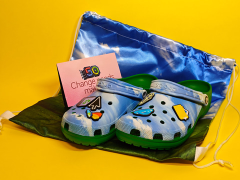 Microsoftの黒歴史を笑い飛ばせとXP大草原柄のクロックスをCrocs社と協業して作成