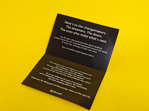あれ、もしかしてMicrosoftさん、Microsoft 50周年のプロモーションだけでなく、クロックスのユーザーを1人増やしたみたいですよ?となってしまい、もしかしたらこれはクロックスのプロモーションなのかもしれないと感じているところだ。デジタルの会社とアナログの会社がタッグを組んだプロモーションの新しい形として、定着するかも……というのが今回の筆者の感想だ。
