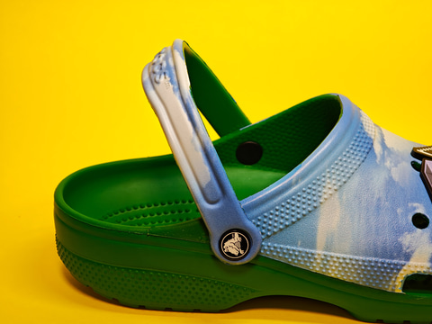 Microsoft Limited Edition Crocs Bundleはクロックスの中でも一番ベーシックな「クラシック クロッグ」がベースになっている。クラシック クロッグをベースにしてWindows XPの壁紙「Bliss」(大草原)の柄が印刷されている形になっており、全体としては大草原柄のクロックスというイメージだ。