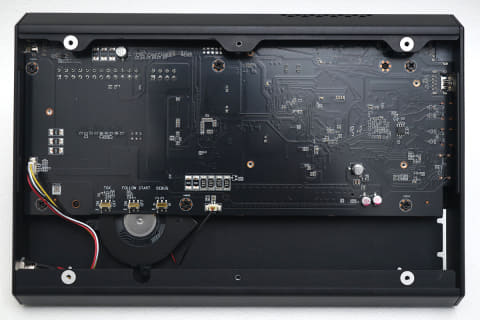 なお、基板には大きなヒートシンクが装着されているほか、アクティブファンも内蔵されていて、熱にはかなり配慮していることが分かった。もっとも、本製品はDEG1とは異なり、Thunderbolt 5、2.5Gigabit Ethernet、USB 3.2 Gen 2コントローラやリドライバなど、多くのチップが集約されているため、安定動作のためにこうした工夫は必要不可欠だったのだろう。