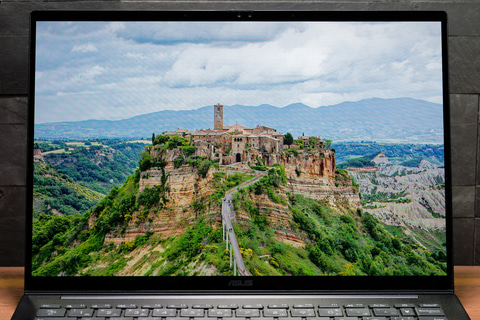 ディスプレイは14型のOLED(有機EL)で、解像度1,920×1,200ドット、リフレッシュレート60Hzのグレアパネルとなる。DCI-P3を100%カバーしたうえで、DisplayHDR 500 True Blackにも対応し、ASUSのほかのOLED採用モデルと同様、色の鮮やかさやコントラストの表現は目を見張るものがある。クリエイティブ用途にも間違いなく生きるだろう。