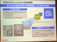 3次元フラッシュについては、Samsungなど既に量産を開始している企業があるが、BiCSの量産が本格化するのはこれからとなる。