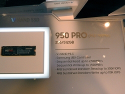 なお、展示会場には、Z-SSDの試作品も展示されていた(展示会場については後述)。その試作品の容量は1TBだが、ユーザーエリアは800GBとされており、960 EVOのIntelligent TurboWriteを発展させたような技術が採用されているのかもしれない。