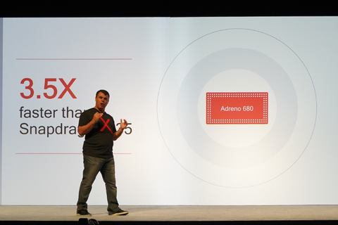 GPUに関してはAdreno 680と同じだが、Qualcomm Technologies 製品管理上級部長 ミゲル・ニュネス氏によれば「GPUは同じブランド名だが、内部の実行エンジンやALUなどを増やしている」とのことで、こちらも性能が強化されているという。ただし、どの程度実行エンジンが増えているのかなどに関しては非公表。トランジスタに関しては倍と説明されており、1~2倍の間のどこかということになるだろう。