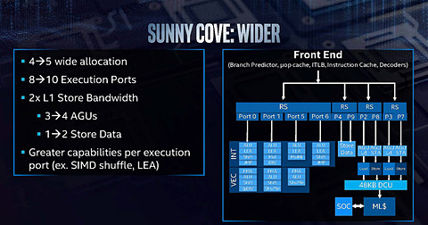 内部の実行ユニットも拡張されており、Skylake世代に比べてワイドアロケーションが4から5に、そして実行ポートは8から10に増やされている。