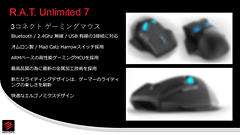 現在開発中の製品としては、Thorスイッチや新ライティングデザインを採用し、軽量エルゴノミクス設計のマウス「R.A.T. Unlimited 2」や、USB有線/2.4GHz無線/Bluetoothの3接続に対応したマウス「R.A.T. Unlimited 7」、アクティブノイズキャンセリング対応のヘッドセット「F.R.E.Q. Unlimited 4」などを紹介した。