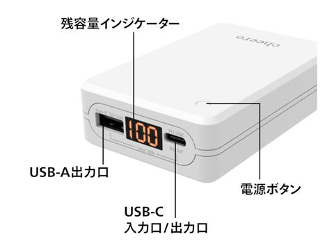 cheero Extra 10000mAh with Power Delivery 18Wは、最大18WのUSB PD出力をサポートした容量10,000mAhのモバイルバッテリ。入出力用のUSB Type-Cポートと出力用のType-Aポートを1基ずつ搭載し、両ポートの間にはバッテリの残り容量を1%刻みで確認できるインジケータを備える。