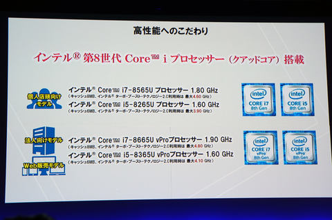 そのなかで小型軽量で可搬性が高く、タブレットとしても使える2in1、高性能CPU、vProを筆頭としたセキュリティ機能搭載など、働き方改革を後押しするデバイスとして、新型レッツノート「QV8」を紹介した。