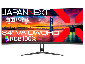 JAPANNEXT、ゲーマー向け3,440×1,440ドット/144Hz/湾曲の34型液晶など