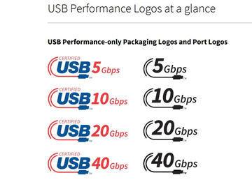 ちなみに、これらの速度や電力表記のロゴの使用は、USB-IFメンバーになるか、そうでない場合は3,500ドルのロゴ管理費がかかる。さらに、製品がUSB-IF準拠のテストに合格する必要がある。USBの規格自体はオープンであるため、参加するかどうか、ルールに則って表記するかどうか、厳密に規格に準拠するかどうかはメーカーに委ねられている。