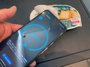 体温測定機能は、Pixel 8 Proの背面カメラを額に向け、横に動かすことで体温測定が行なえるというもの。仕組みとしては、背面カメラ横に搭載された赤外線センサーを利用して側頭動脈をスキャンし、そのデータに基づいてアルゴリズムが体温を算出している。額の中心にセンサーを向けて測る体温計と比べ、より正確な測定が可能で、Tensor G3チップ上で処理しているため、ネットワークの接続がなくてもスマートフォン単体で利用できる。