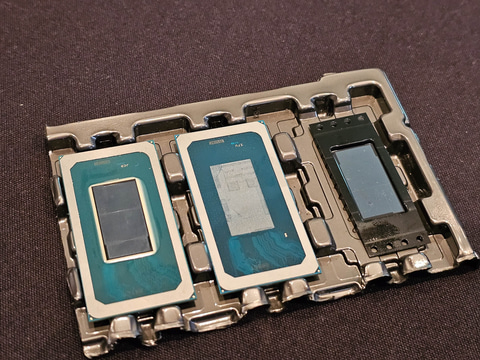 組み立ての工程では、サブ基板にダイやコンポーネント(たとえばサブ基板上にあるチップ抵抗など)を乗せて行き、隙間に樹脂をいれ、最終的に加熱してはんだを固定していく。その後、ノートPC向けのCore Ultraであれば周囲に基板が曲がらないような補強材を装着し、デスクトップPC向けのCore(第14世代)であれば、ダイの上にTIM(Thermal Interface Material」を乗せ、さらにIHS(Integrated Heat Spreader)を乗せて、多少クーラーにズレがあっても確実に放熱できるようにする。