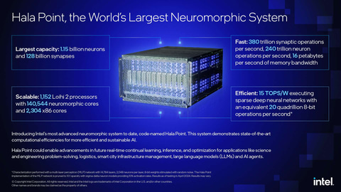 米Intelは17日(現地時間)、最新のIntel 3製造プロセスを採用した「Loihi 2」プロセッサを搭載した、世界最大規模となるニューロモーフィック・システムの構築「Hala Point」の構築を完了したと発表した。最初にサンディア国立研究所に導入される予定となっている。