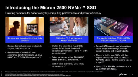 Micron Technologyは25日、同社が16日(米国時間)に発表した、232層QLC NANDフラッシュを採用したクライアント/データセンター向けSSD「Micron 2500 SSD」に関する説明会を実施した。