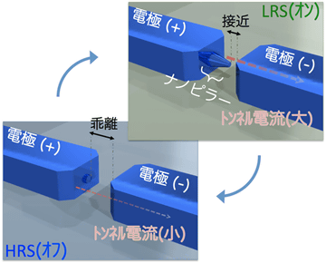 なお、600℃の環境下に耐える不揮発性メモリ技術としては、千葉工業大学の菅洋志助教らが2016年に発表した「白金ナノギャップ構造」がある。これはナノギャップの空隙に可逆変化する白金ナノピラーを成長させ、その接近と乖離によって、トンネル電流の抵抗値を大きく変化させ、その抵抗値の変化によって0と1を記憶させるというもの。